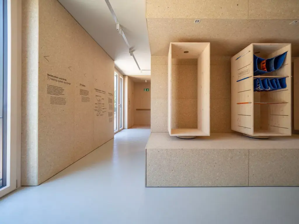 Die Biberacher setzten für die Wandverkleidung elka vita Naturholzplatten ein und im Wandaufbau esb-PLUS.