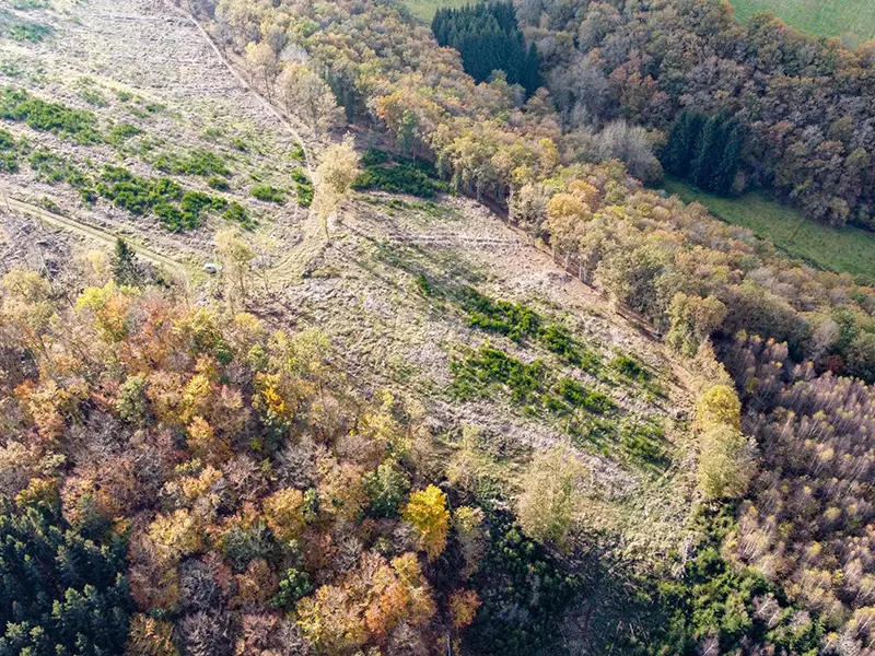 De topografie van het bos vormt een extra uitdaging, aangezien veel gebieden op hellingen liggen. Dit bemoeilijkt niet alleen de houtoogst, maar bevordert ook bodemerosie bij gebrek aan vegetatie. Tegelijkertijd neemt de behoefte aan herbebossing toe. De dringende noodzaak om nieuwe en meer aanpasbare boompopulaties te vestigen is vooral duidelijk in sectie 33, waar een gebied met sparren van middelbare leeftijd in 2023 voorgoed moest zijn geoogst. Daarom werd dit gebied gekozen voor de elka-plantactie van dit jaar.