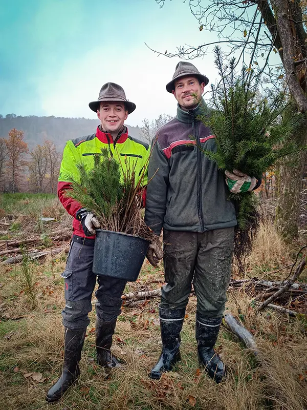 Elka unterstützt diese wertvolle Forstarbeit mit 1.000 Douglasien, 1.000 Schwarzkiefern und 1.350 Bergahorn und leistet somit einen wichtigen Beitrag für den Erhalt und die Stärkung unserer heimischen Wälder und den Klimaschutz.
